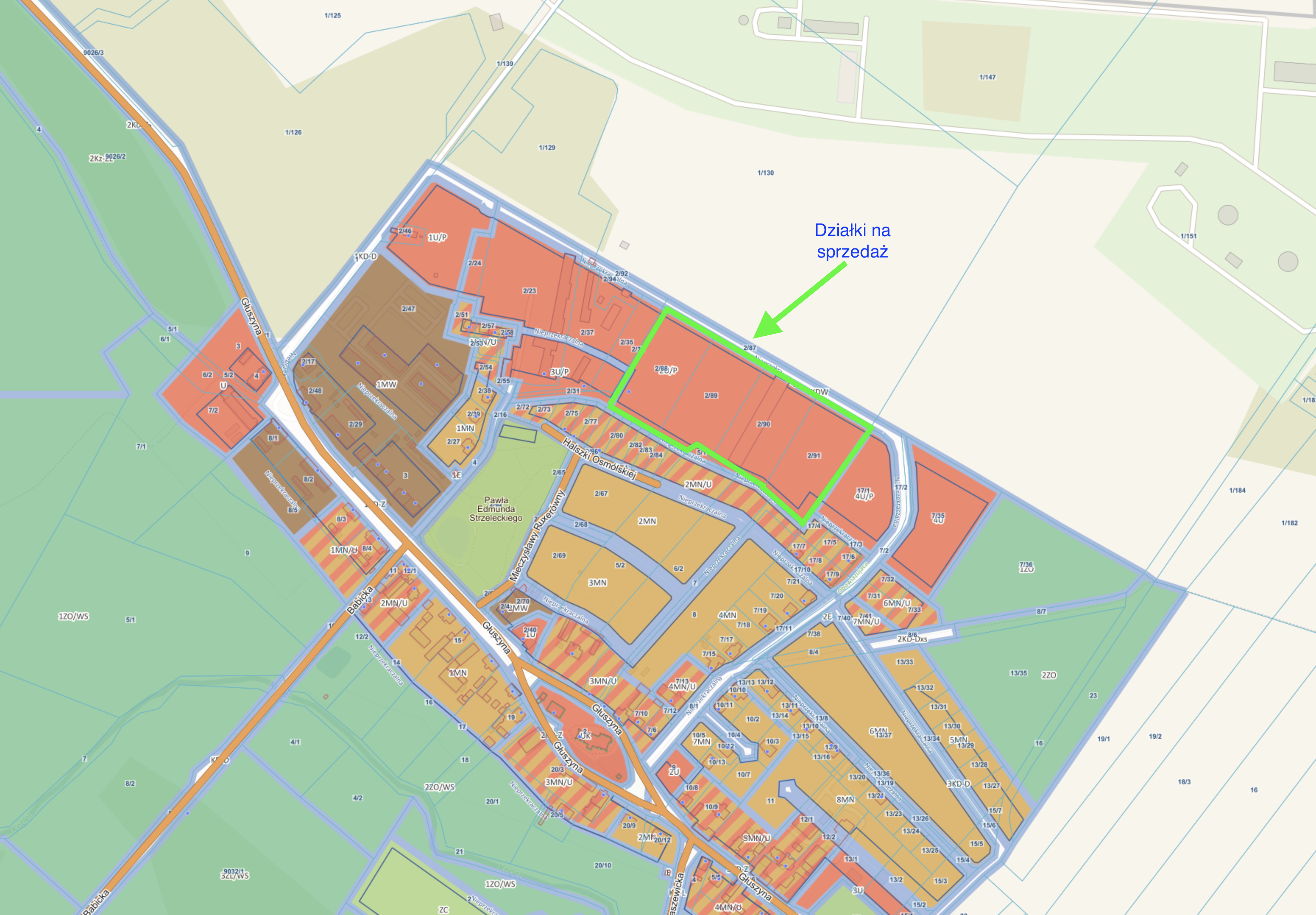 g) powierzchnię nowej działki budowlanej, z wyłączeniem działek przeznaczonych pod infrastrukturę techniczną, dojścia i dojazdy, nie mniejszą niż:- 7000 m2 na terenach 2U/P, 3U/P,- 4500 m2 na terenie 1U/P,- 1500 m2 na terenie 4U/P,